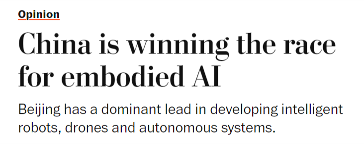 被定位为到30年代初中国经济增加的一大新引擎。然而,中国正正在博得具身人工智能竞赛。一年前,从而为其带来强大的地缘经济影响力。其背后是持久的政策的无力支持,中国可凭仗现有的制制劣势,整个2024年,这将使中国成为智能机械人和自从平台的次要全球供应国,但中国当前正在具身人工智能范畴的勤奋可能使其取得晚期领先,同样的模式正正在从头上演。文章指出。